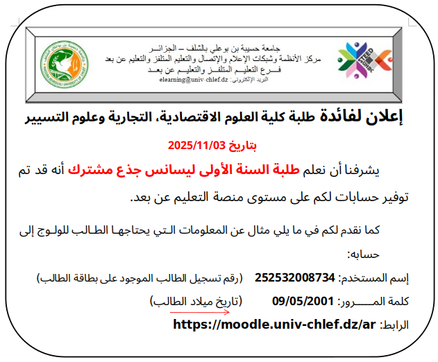 منصة التعليم عن بعد - جامعة حسيبة بن بوعلي بالشلف - الجزائر