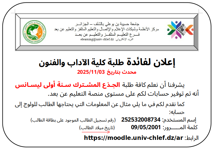 منصة التعليم عن بعد - جامعة حسيبة بن بوعلي بالشلف - الجزائر