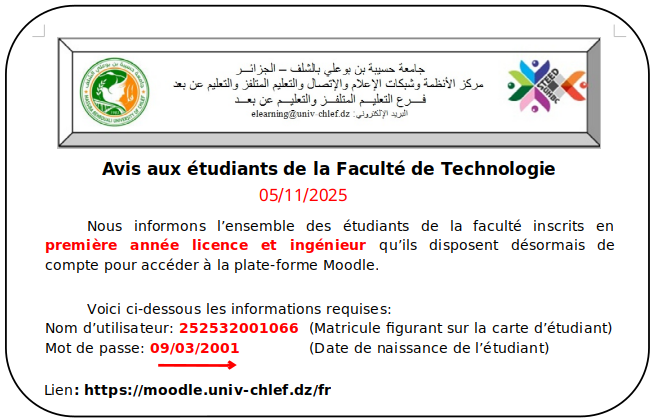 Plateforme Pédagogique - Université Hassiba Ben Bouali de Chlef - Algérie
