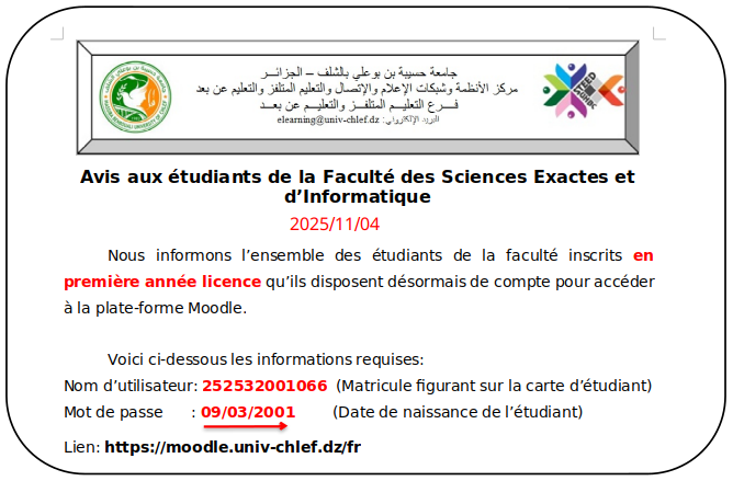Plateforme Pédagogique - Université Hassiba Ben Bouali de Chlef - Algérie