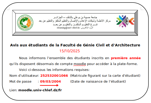 Avis aux étudiants de la Faculté de Génie Civil et d'Architecture