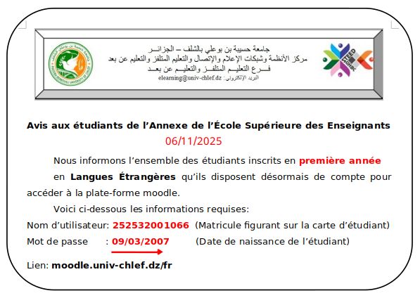 Avis aux étudiants de l’Annexe de l’École Supérieure des Enseignants